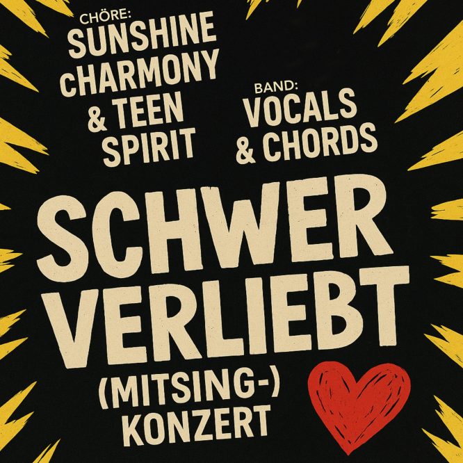 Schwer verliebt! Ein (Mitsing-) Konzert mit Knutschpotenzial Zwei Chöre, eine Band, eine Mission: Liebeslieder in die Welt posaunen – mit