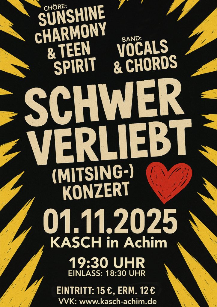 Ob am Ende alle mit rosaroter Brille oder einfach nur mit guter Laune nach Hause gehen, das finden wir gemeinsam heraus am Sa, 1.11.2025 um 19:30 Uhr im großen Saal des KASCH Achim (Einlass 18:30 Uhr). Karten gibt’s im VVK für 15€ (erm. 12€) unter www.kasch-achim.de und an der Abendkasse.